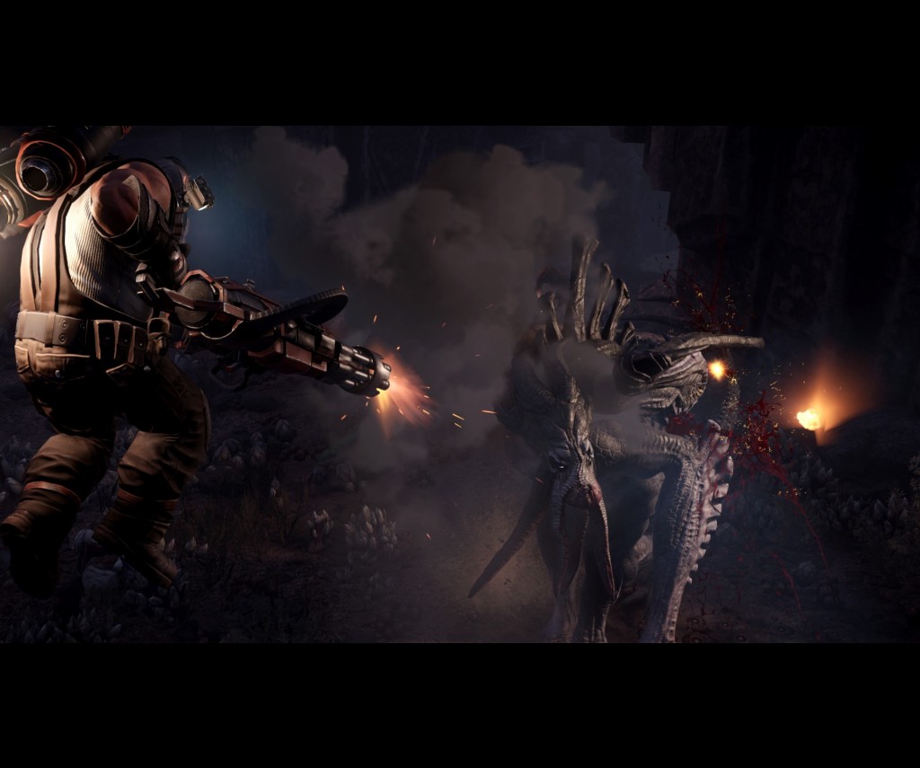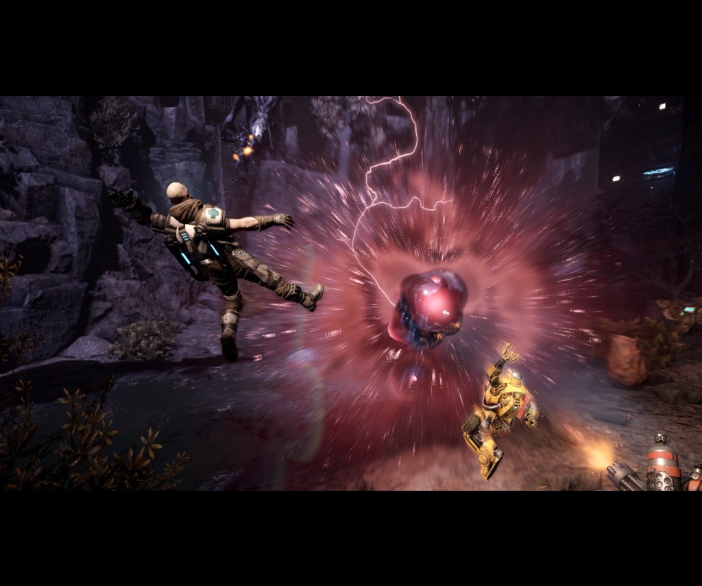 Evolve has gamers taking the role of one of four different Hunter classes or one of the three Monsters who inhabit Shear. The human classes are fairly standard, with the Assault class that deals out the firepower, the Medic class that heals teammates and the Support class that buffs teammates and calls in airstrikes. The Trapper class though is a little different in that they have access to a Trapping device that basically immobilises the Monster for a short period of time. Each playable character has their own little back-story that comes out as you play through the missions and each have their own humorous quips.