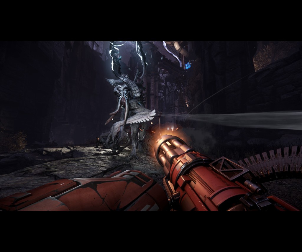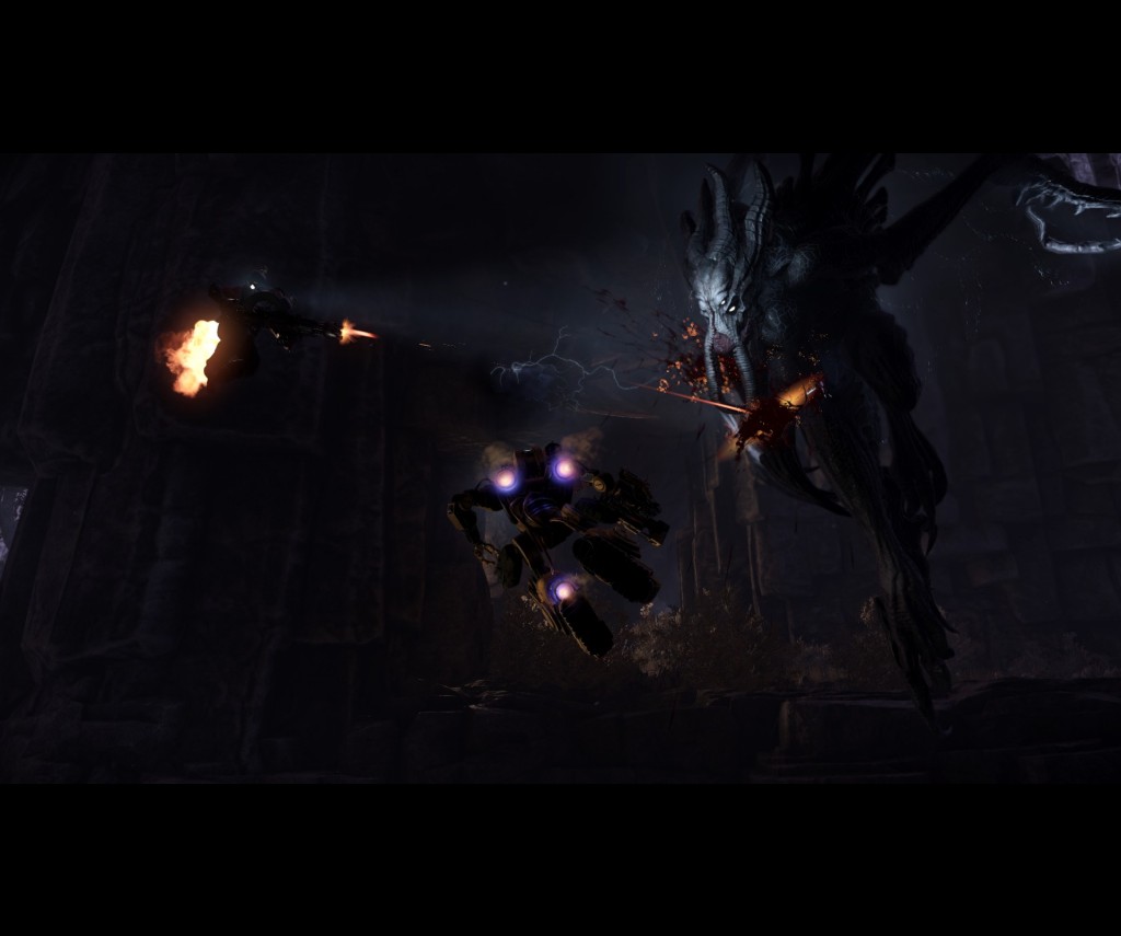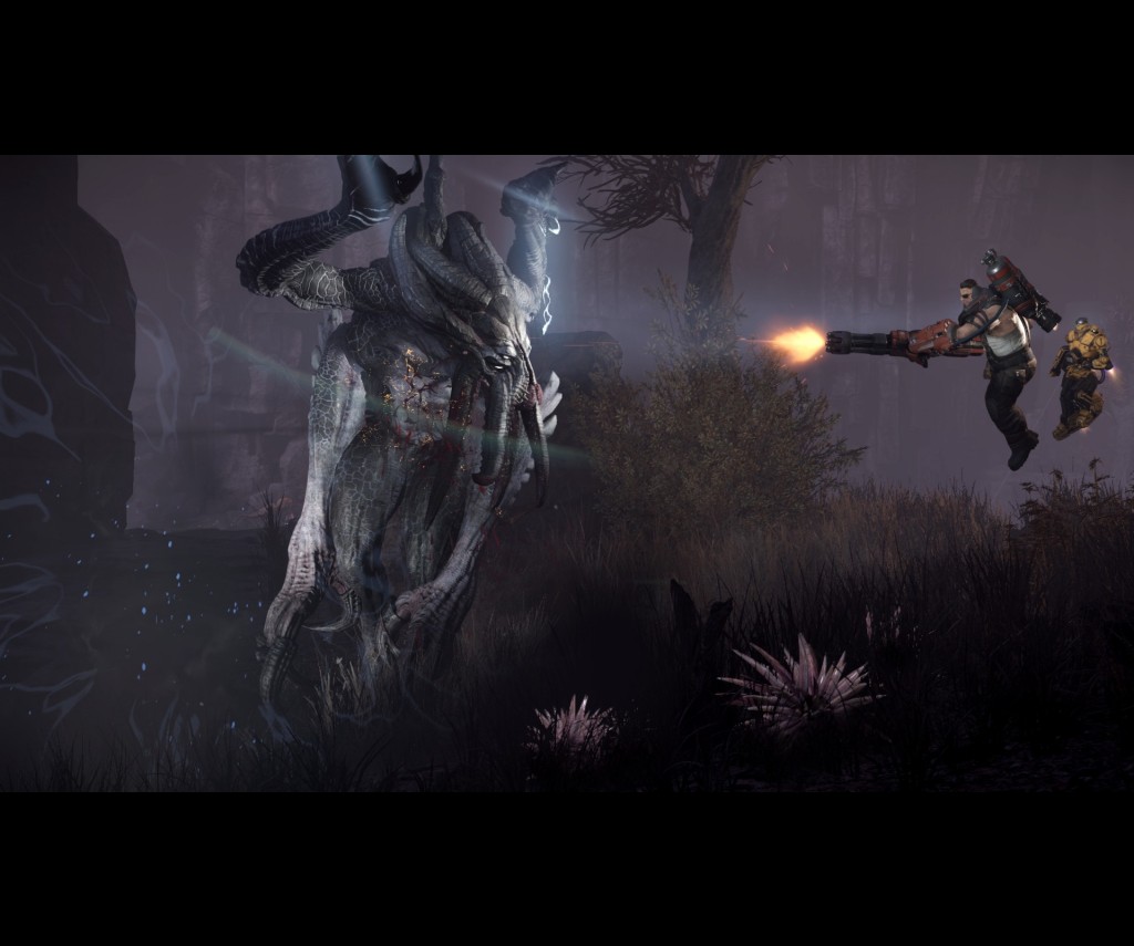 Fun they may be, it is the game’s bestiary that makes Evolve interesting. I must admit that although I’m not the best at playing the Monsters online, they've proven to be a heap of fun to play. The three Monsters, like the Hunters, have various skills which add to the replay factor but they also all have one thing in common – they evolve into greater forms of their character by feeding on prey. As they evolve, the Monsters receive improved health bars and superior abilities, so as a Hunter you’ll want to attack a Monster as soon as you can, before they get a chance to evolve. The Goliath could be considered the tank class of the Monsters as its abilities focus mainly on short range fighting. It can breathe fire, charge at Hunters and throw rocks at those attacking them and has the most armour of the three Monsters. The Kraken, on the other hand is the ranged class, using its tentacle-like appendages to attack from a distance, as well as creating lightning strikes. The Wraith is, for me anyway, the toughest of the Monsters to combat. It has much less armour than the other two, but moves much quicker and has the ability to warp instantly to other areas of the map allowing a quick getaway from foes.