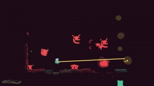When you’re hit, parts of you go flying: mainly your body, head, gun and rucksack. You would think that losing your head pretty much means death. But in GoNNER it does not. Or rather, it’s not a certainty. When you’re running around without a head, your death is only one more monster hit away but if you are lucky, and I’ve seen it happen, you can collect your head, weapon and rucksack again and play on to finish the level. You can even finish without your head if you can outrun the monsters and make it to the giant tubeworms that reside at both ends of the level and that will swallow you up to transport you to the next level.