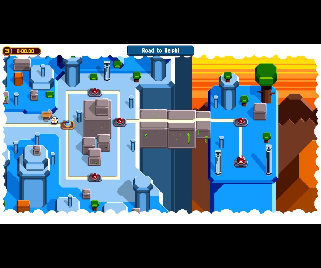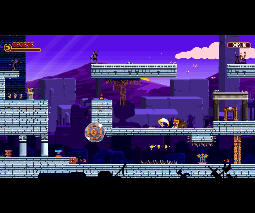 You’re first introduced to the hero of the game, Epicus, in a short tutorial which serves as a succinct summary of the mechanics of traversal, as well as a cursory in-universe explanation as to why there are potentially hundreds of adventures for Epicus to go on. Million to One Hero is going for an ancient mythological aesthetic, and the tone of the writing carries just enough irreverent humour to be engaging without crossing into cringeworthy territory. Epicus can jump, dash, slash and wall slide - he’s a pretty nimble fellow. By the end of the three-level tutorial (satisfyingly presented using the same campaign format you’ll be able to get your hands on afterwards) you should be pretty comfortable in moving this feisty guy around the environment.