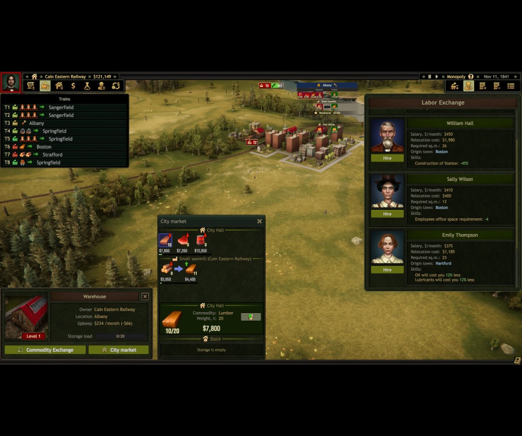 Railroad Corporation features a lobbying mechanic through which the player can influence taxes and incentives. The very idea is promising but the current implementation is rudimentary at best. Being taxed or making a bit more profit on specific goods doesn’t affect the game all that much. I can imagine, though, that more outspoken measures could be tremendous fun in multiplayer games. Imagine eyeing an opponent’s profitable furniture industry and then successfully lobbying to stop deforestation in the town he’s depending on for his wood.