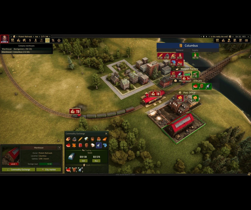 The latest game hoping to capitalize on the sense of romance surrounding this era is Railroad Corporation which went into Early Access late May. In its current form, it is a business simulation that tasks players to build railroad networks and transport goods along them for profit.