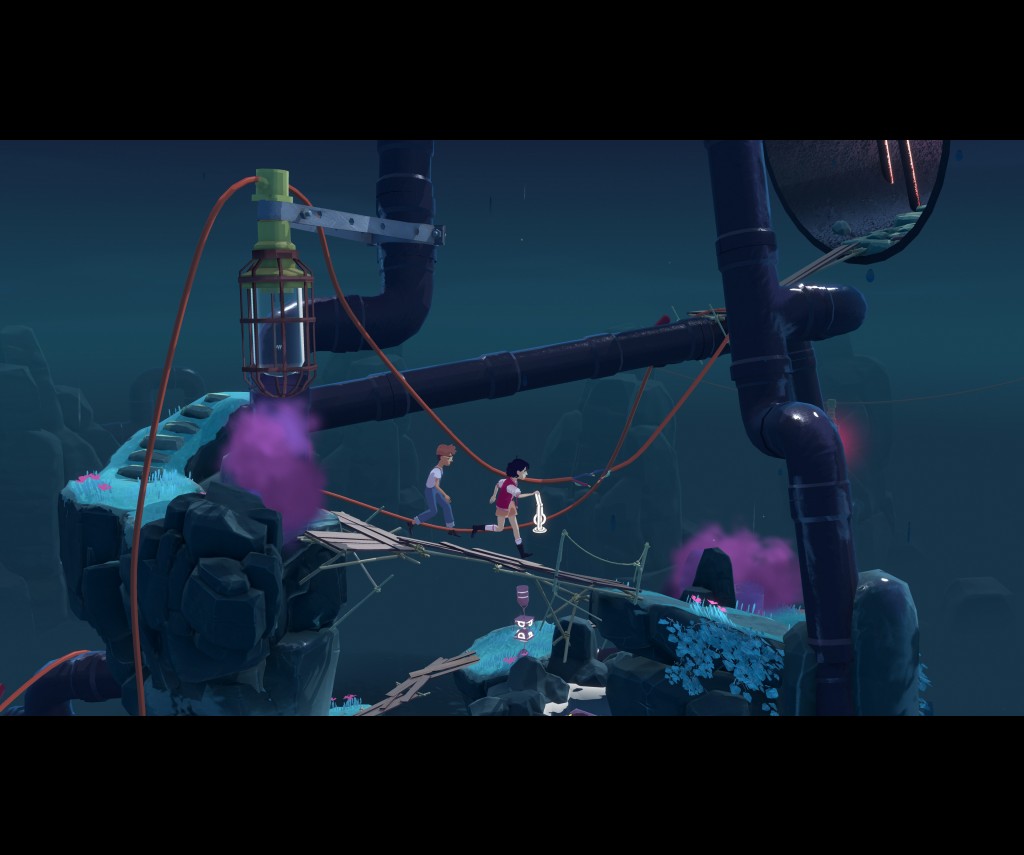 Players control the two friends, who seem to be tethered together with an invisible rope as they move through the scenarios. Each of them has their own skillset though and can manipulate various sections of the locations. Anita carries the orb lamp and Frendt performs the action sequences in the game – namely ringing the special bells located around the levels. Anita and Frendt will only move forward and backwards though, and as they do so, certain objects within the scenes move too. Walking forward moves time ahead, whilst walking backwards reverses time. Similar to Braid, these interactions and manipulation of time is the feature of the puzzles.