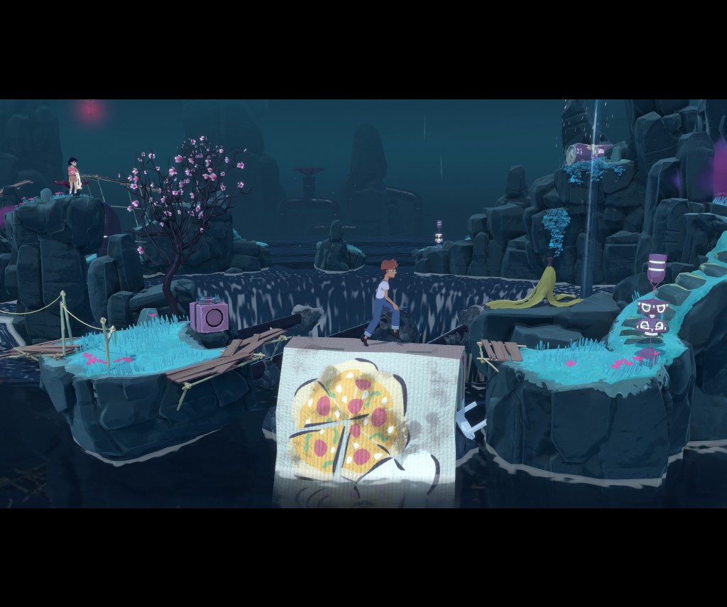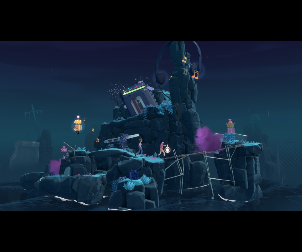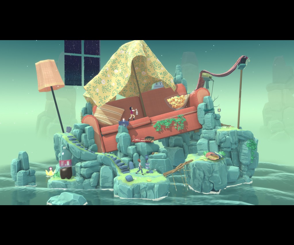 The scenes have been well thought out. Children of the 80’s such as myself will be able to reminisce with most of the settings, and I particularly enjoyed how the environment in each scene played a part in how the puzzle is solved. OK…so slight spoiler alert there. But the puzzle elements are simple, and likewise, the controls. Forward, backward and the action button for each of the characters. It makes The Gardens Between playable by all ages. The settings are delightfully abstract but fit in perfectly as a way of telling the dialogue-free story. As mentioned previously, each level represents an adventure taken by the two friends together. With an 80’s theme, the settings represent watching movies, playing in sewer drains and picnicking in the park and staring up at the stars.
