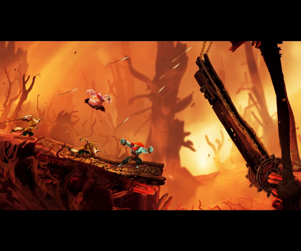 These special abilities are used to create some interesting puzzles throughout the platforming and fighting sections of the game. They're usually pretty simple, and I think that the combat is really where the game shines, but the puzzles are fun to tackle regardless. This is because Unruly Heroes really creates interesting ways in which each special ability interacts with another character's abilities. This makes traversing the areas interesting beyond the eye candy offered in each unique area.