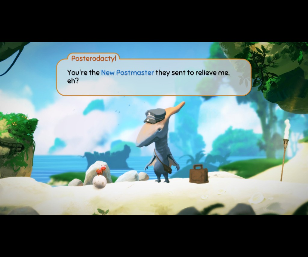 Yoku is a dung beetle pushing around what could be dung, but looks more like a small, round rock. The start of the game sees Mokumana Island’s previous postman, a pterodactyl, or a posterodactyl if you will, getting the hell out of Dodge. This is clearly not going to be the easiest job in the world, and indeed, Yoku discovers that an ancient god is trapped in a sleep, and his nightmares are causing no end of troubles and disasters for the local residents.