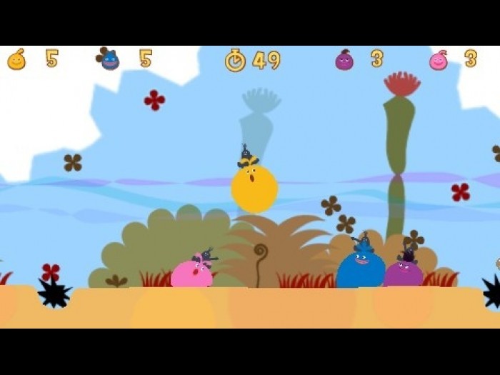 Due to the style of the game, one could easily infer that LocoRoco offers little to no objectives. In reality though, the game offers players a large variety of different objectives. Though gamers will spend most of their time avoiding obstacles and trying to make their way through each level, the game also requires players to collect large berries that will add more LocoRocos to your army. By increasing the number of the creatures at your disposal, players can participate in a fun little musical minigame that requires players to match notes of a song to their outlines at the edge of the screen. Gathering notes is also equally important as the other objectives because they will help you combat the Mojas dark music notes. Besides this, they also provide players with some hefty little bonuses, such as protecting the LocoRocos from spikes.