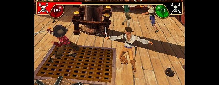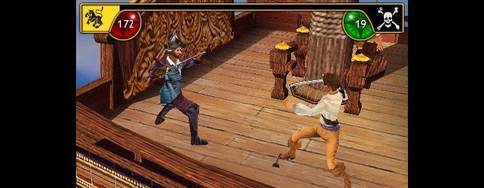 Once the two vessels are close enough to each other, boarding will occur automatically. However, if the enemy ship doesn't have enough crew left to resist your men, they may just as easily surrender. When you board the enemy ship, you will have to choose your preferred sword type and meet the enemy captain for a one on one duel. Swordplay in this portable version of Pirates! is not even as sophisticated as it is in the full version. Using combination of the 'X' , 'O' and directional buttons, you guard, parry, dodge, and thrust your way to defeating the enemy captain. It takes a little practice if you are already accustomed to the PC version of Pirates! The swordplay will feel sluggish at best, though not really hinder gameplay as much as one would expect, since the enemy captain seems to be just as sluggish.
