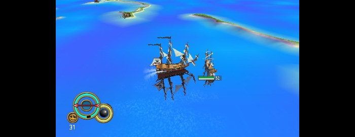 During your travels as an aspiring pirate, it may in fact be a good idea to claim a few stray ships in the name of, well, piracy. This can get a little tricky however. When you are close enough to engage a target, you will see an arrow from your ship to your target. It is important to insure target accuracy. In other words, make sure you are locked on to your intended target before actually engaging. It is very easy to accidentally attack the wrong or even a friendly ship because the direction of the target arrow was not confirmed. Depending on the modifications made to your ship, you will have options to switch between three different type of cannon shot: standard, chain and grape.